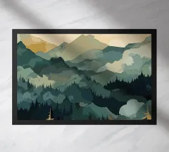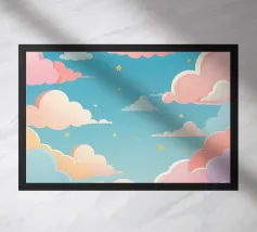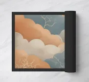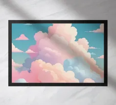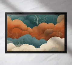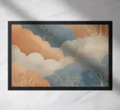 Questa opera d'arte eterea invita a fuggire in un mondo di tranquillità e meraviglia. Le morbide tonalità del paesaggio nuvoloso creano un senso di pace, mentre le delicate sagome degli alberi aggiungono un tocco di mistero. Lasciate vagare l'immaginazione guardando questa scena serena, dove il cielo incontra la terra in un'armoniosa miscela di colori e texture.