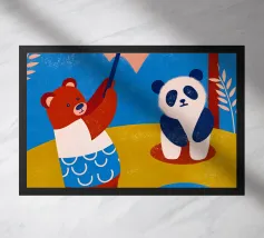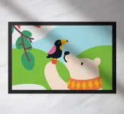 questa affettuosa illustrazione "Bear and Bird"! Questo affascinante disegno raffigura orsi e uccelli che giocano insieme, creando un'atmosfera calda e accogliente per tutta la famiglia.