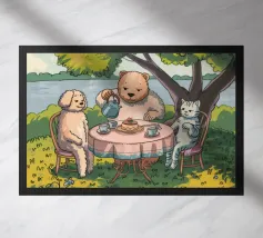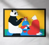 Amante degli animali? Questa illustrazione di panda e cane è la scelta perfetta per voi! Questo simpatico e colorato disegno è perfetto per un regalo o una collezione personale.