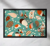 Una vibrante fusione di estetica moderna di metà secolo e boho, questo motivo ispirato al paisley presenta intricati dettagli patchwork con motivi geometrici, floreali e astratti. I toni terrosi dell'arancione, del marrone e del crema si stagliano su uno sfondo verde acqua, creando un'atmosfera nostalgica ma fresca. Perfetto per arredare la casa in stile retrò, per creare una parete elegante o per creare tessuti di grande effetto.