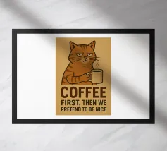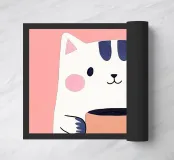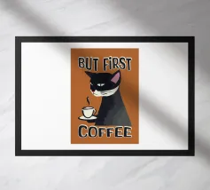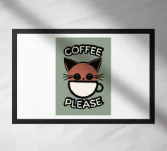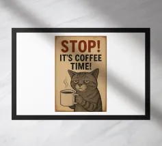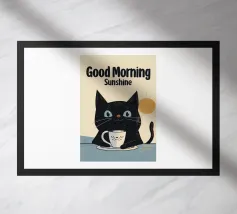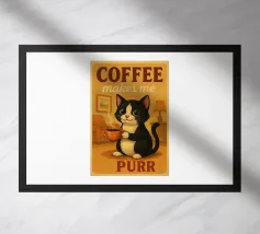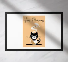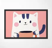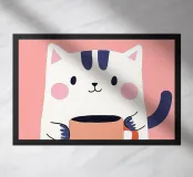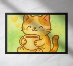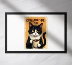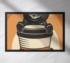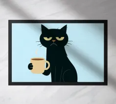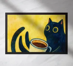 Questo simpatico gatto scarabocchio con la sua tazza di caffè aggiunge un tocco di umorismo e di stile a qualsiasi spazio abitativo.