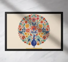 This meticulously crafted piece showcases a vibrant peacock feather in stunning detail, capturing the iridescent beauty and intricate patterns of nature's masterpiece.