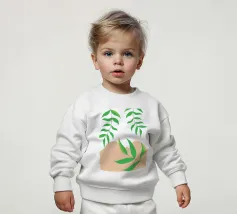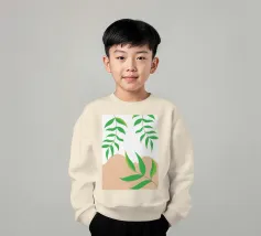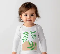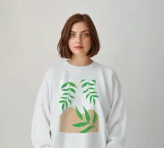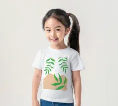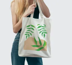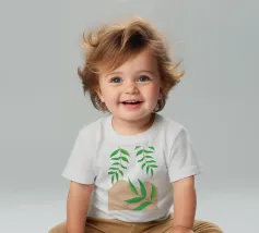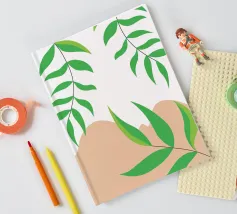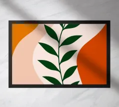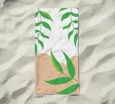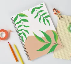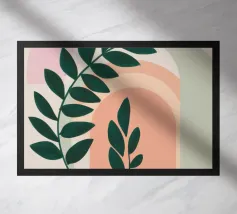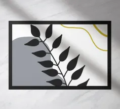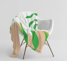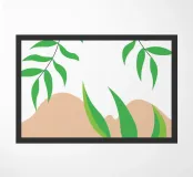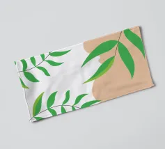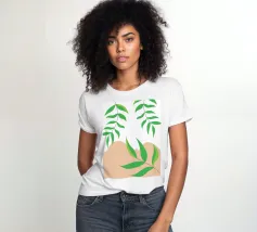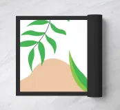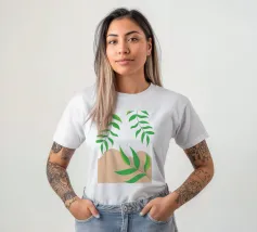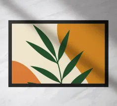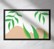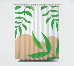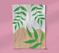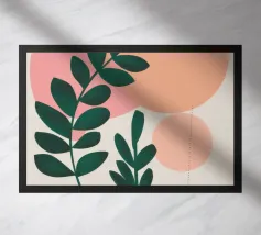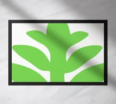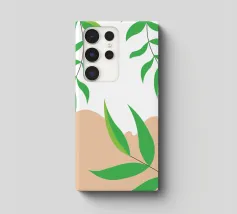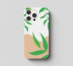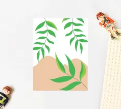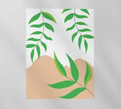 Foglie verdi e rigogliose penzolano con grazia da rami sottili. Il design è caratterizzato da un'estetica minimalista con vivaci elementi naturali.