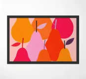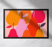 Una moderna illustrazione di pere dai colori tenui e dalle forme semplici.