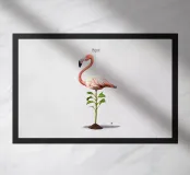 Comical illustration of the reworking of the expression, feet planted firmly on the ground. Using one of the more glamorous and static birds around; the flamingo