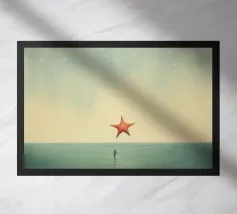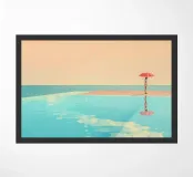 This captivating artwork captures a peaceful moment by the pool, where a lone figure holds an umbrella against the backdrop of a stunning sunset. The soft hues of the sky, combined with the calm, reflective waters, evoke feelings of serenity and introspection. Perfect for modern spaces, this piece will bring tranquility and subtle elegance to your home decor. Its minimalist approach to color and composition invites a sense of calm, making it an ideal addition to any contemporary space.