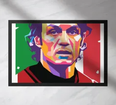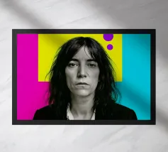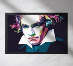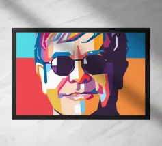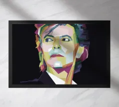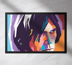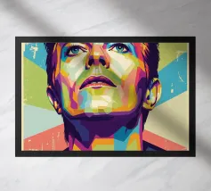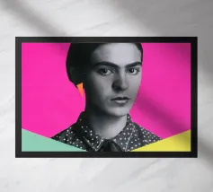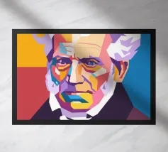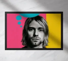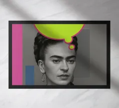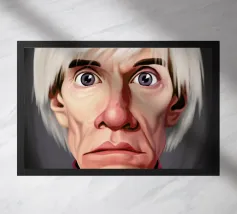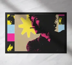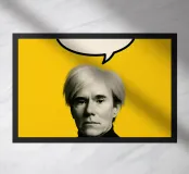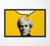 Andy Warhol, il re della pop art, in un omaggio con un colpo di scena: una bolla vocale vuota fluttua sopra la sua testa - su uno sfondo giallo brillante, combinato con allusioni colorate CMYK in ciano, magenta e nero. Tra ritratto, pop e post-ironia. Fa parte della serie Geometric Masters, che decostruisce figure artistiche iconiche utilizzando forme e colori geometrici. Forte, intelligente, moderno.