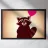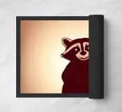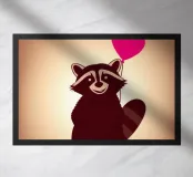 Un affascinante procione tiene in mano un vivace palloncino a forma di cuore, che emana uno spirito giocoso in un design minimalista. Lo sfondo caldo esalta l'atmosfera stravagante della scena.