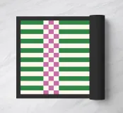 Quadri e linee viola e verde smeraldo su uno sfondo bianco brillante conferiscono a questo disegno un tocco festoso e giocoso. Ideale per aggiungere energia gioiosa e un tocco di moderno eclettismo al vostro arredamento.