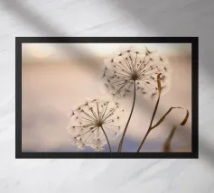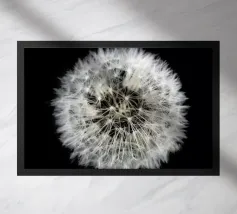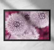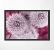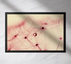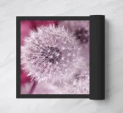 Dente di leone bianco su sfondo rosa, ripresa macro.