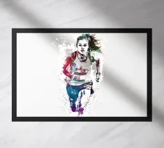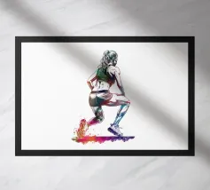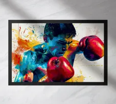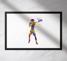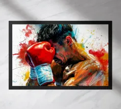 Scoprite la cruda energia di una ragazza pugile in questo disegno ad acquerello e inchiostro in stile Banksy. Linee decise e colori vivaci catturano la forza e lo spirito di questa potente opera d'arte.