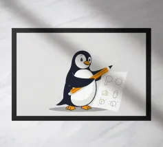 Illustrazione comica dell'interpretazione della barzelletta in bianco e nero, riguardante i pinguini e i giornali.