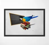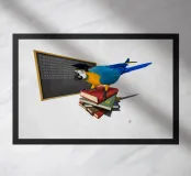 Illustrazione comica di un commento socio-politico sul modo in cui l'istruzione è diventata un meccanismo piuttosto che un sistema per sviluppare le menti. Tutto è copia, ripeti, copia, ripeti, a pappagallo.