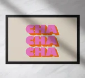 Datevi da fare con questa stampa tipografica retrò "Cha Cha Cha"! Le audaci lettere rosa e la vibrante ombra arancione creano un design sorprendente e giocoso, perfetto per aggiungere un tocco di divertimento vintage a qualsiasi spazio. Questa stampa è una celebrazione del ballo, della musica e dei bei momenti. Creato da showmemars