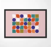 Un disegno astratto geometrico audace e giocoso, caratterizzato da un mix di cerchi, quadrati e forme curve in una vivace tavolozza di ispirazione rétro. La composizione equilibrata e i toni caldi lo rendono un'aggiunta elegante agli interni moderni, all'arredamento di metà secolo e alle pareti colorate delle gallerie. Perfetto per chi ama i motivi astratti e l'estetica geometrica senza tempo. Progettato da showmemars
