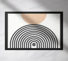 Questo design moderno combina forme geometriche minimaliste con un arancione deciso e linee delicate in nero. La struttura chiara e l'accattivante gioco di colori creano un equilibrio perfetto tra le vibrazioni retrò e l'estetica contemporanea. Ideale per murales, cuscini, tazze o cover per telefoni cellulari, questo motivo si impone con stile in soggiorni, uffici o come regalo creativo. Un must per gli amanti dell'arte minimalista e geometrica.
