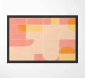 Motivo moderno di metà secolo ispirato ai pavimenti e ai murales in piastrelle di metà secolo. Linee slanciate, forme semplici, texture rumorose e una tavolozza di coralli vivi.