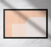 Motivo moderno di metà secolo ispirato ai pavimenti e ai murales in piastrelle di metà secolo. Linee slanciate, forme semplici, texture rumorosa e tavolozza di perle rosa.