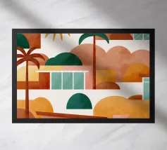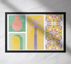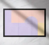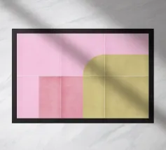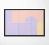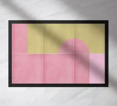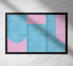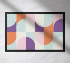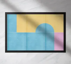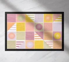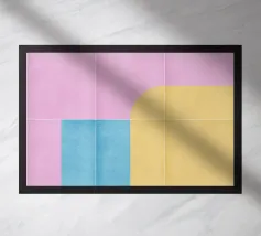 Questo design giocoso presenta un vivace mix di colori pastello e forme geometriche, evocando un'atmosfera nostalgica ma moderna.