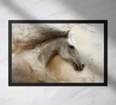 Un ritratto surreale con un uomo muscoloso che indossa una dettagliata maschera da cavallo, in posa su uno sfondo scuro e lunatico. La combinazione di tratti umani e animali crea un concetto visivo stimolante e fantasioso.
