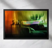 Un invito a viaggiare tra luce e ombra. Questo quadro astratto gioca con i toni caldi e le sfumature neon per creare un'atmosfera incantevole. Perfetto per arricchire di eleganza i vostri interni.