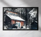 Questo affascinante motivo mostra una rustica capanna di legno circondata da alberi innevati e da una profonda magia invernale. Le calde tonalità del legno della facciata contrastano magnificamente con il bianco brillante della neve, creando un'atmosfera invitante e tranquilla. Perfetto per opere d'arte da parete, cuscini o tazze, questo disegno porta l'intimità e il romanticismo di una capanna invernale direttamente a casa vostra. Ideale per gli amanti della natura, per i fan dello stile scandinavo e per chiunque apprezzi la magia dell'inverno.