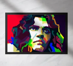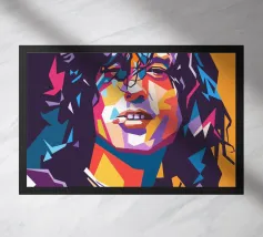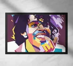 Ritchie Blackmore nello stile WPAP è rappresentato attraverso forme geometriche e colori vibranti e contrastanti che catturano la sua intensa personalità e la sua iconica presenza come chitarrista leggendario. Lo stile enfatizza gli angoli acuti e le aree di colore piatte, trasformando i tratti del viso, i capelli lunghi e l'espressione tipica del chitarrista in un'immagine pop-art di grande impatto che riflette sia la sua eredità rock che la sua energia artistica.