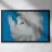 Un lupo bianco sembra emergere da una nuvola di nebbia su un suggestivo sfondo blu. La raffigurazione del lupo è morbida ed eterea, con i suoi dettagli che sfumano delicatamente nel vapore circostante.