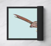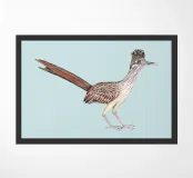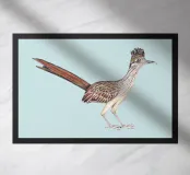 Disegno a matita colorata di un roadrunner maggiore. L'uccello è visto di lato, in modo che la sua lunga coda sia ben visibile nell'immagine.