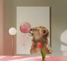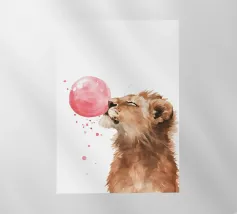 Un piccolo leone, ma di grande stile! Questo poster mostra un leoncino che soffia con gusto una bolla di gomma da masticare rosa - affascinante, moderno e spiritoso. L'aspetto morbido dell'acquerello lo rende un'attrazione per la stanza dei bambini, il corridoio o l'ufficio di casa. Ideale per chi ama la natura, gli animali e la cultura pop!