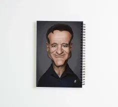 A humorous caricature illustration of the well-known American actor, movie star and comedian; Robin Williams. One of a series of caricatures achieved for the Celebrity Sunday series, where a famous person is rendered within a day. The idea is to show them as if in a passport photo to have consistency.