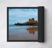 Fotografia di una spiaggia in Portogallo, sulla costa atlantica, con grandi rocce in riva al mare.