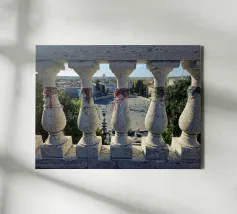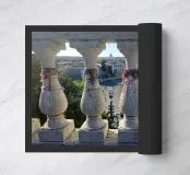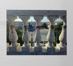 Lucky bracelets attached to the balustrade of a terrace overlooking one of the squares of the city of Rome.