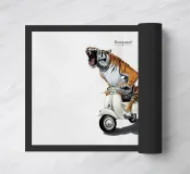 Un'illustrazione comica della forza impegnata che la guida di una Vespa classica può fornire, indipendentemente dalla potenza della voce del pilota.