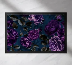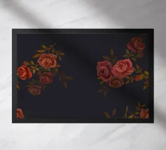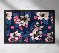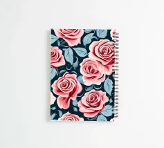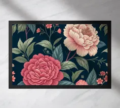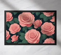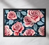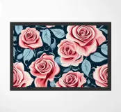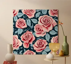 Un accattivante motivo floreale con delicate rose rosa e rigogliose foglie verdi su uno sfondo blu navy. Perfetto per aggiungere un tocco di eleganza e romanticismo a qualsiasi spazio.