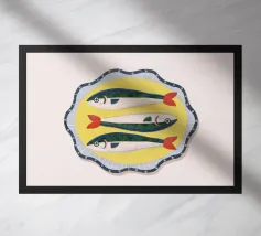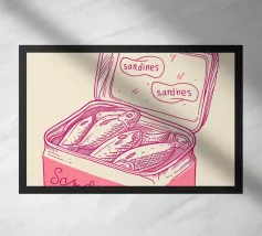Stampa retrò di Fox & Velvet con sardine e pesciolini in scatola.