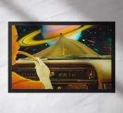Partite per un'avventura interstellare con Saturn Commute. Questa opera d'arte vibrante e stimolante vi trasporta direttamente in un viaggio cosmico, mentre ammirate gli illustri anelli di Saturno dal comfort degli interni di un'auto retrò. Le tonalità calde e l'atmosfera nostalgica ne fanno uno sfondo ideale per chi desidera un tocco di fantasia spaziale vintage nel proprio salotto, ufficio o sala giochi. Immergetevi in una fuga astrale, dove lo stile senza tempo incontra l'infinità dell'universo.