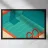 Poster raffigurante una piscina estiva con una scala arancione e riflessi d'acqua stilizzati. Un gioco di ombre, luci grafiche e una tavolozza solare. Perfetto per un look vintage e rinfrescante.