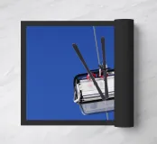 Sciatore in ascensore fotografato dal basso sulle Alpi (Spitzingsee), di Simon Koy.
