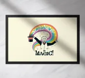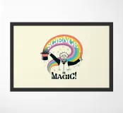 Un'opera d'arte che raffigura Albert Einstein vestito da mago, che evoca un vibrante arcobaleno dal suo cappello, accompagnato dalla frase "Science Magic". Questo delizioso pezzo è un regalo ideale per chiunque apprezzi l'incanto della scienza e le sue miriadi di meraviglie.