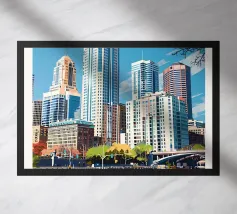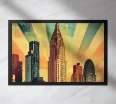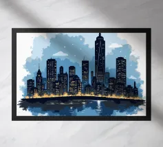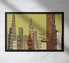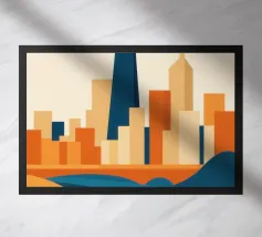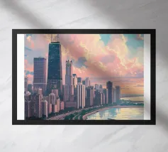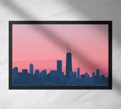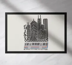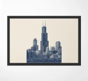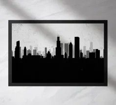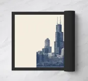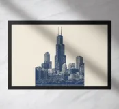 Questo poster mostra l'imponente skyline di Chicago nel caratteristico stile lino print, con la dominante Willis Tower al centro e il lago Michigan in primo piano. Perfetto per gli amanti dell'architettura americana, dell'estetica dello skyline e dei classici poster cittadini. Ideale per soggiorni, uffici o pareti creative dal sapore urbano.