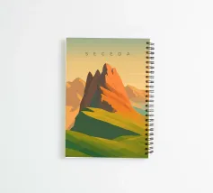 Motivo di viaggio minimalista o design di montagna del Seceda in estate nelle Alpi italiane, le Dolomiti. Panorama alpino con un'affascinante vista delle cime Geisler nelle montagne dell'Alto Adige. Ideale per chi ama la montagna e si diletta in escursioni, alpinismo, arrampicata e sci.