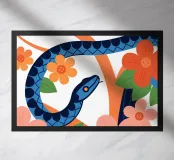 Portate un tocco di natura selvaggia nella vostra casa con questa illustrazione di un serpente in un contesto floreale.