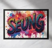 Seung "Vittoria, successo" con un'opera d'arte colorata e sfumata che mette in risalto il nome.