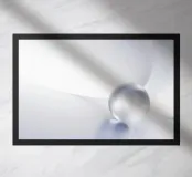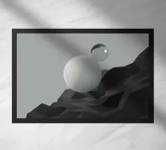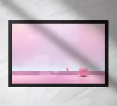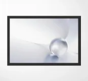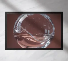 Una sfera trasparente poggia tranquillamente su una superficie bianca e pulita, catturando la luce intorno a sé. La sua forma liscia e cristallina riflette le luci soffuse e rivela le ombre sottili sottostanti, creando un senso di purezza e semplicità. La sfera sembra quasi priva di peso, come una goccia di luce congelata in uno spazio perfettamente calmo.