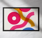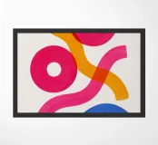 Cerchi, linee, movimento: Questo poster astratto combina forme giocose con colori audaci in rosa, arancione e blu. La composizione è dinamica, leggera e piena di energia, come una danza visiva di colori e forme. Ideale per interni moderni, spazi di lavoro creativi o amanti del design con il coraggio di abbracciare il colore.