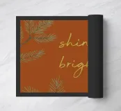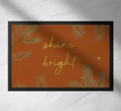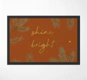 Un'illustrazione per la stagione invernale! Uno sfondo marrone rossastro con ramoscelli di pino, stelle e il testo "Shine bright" in look dorato. (Non è un foglio d'oro!)