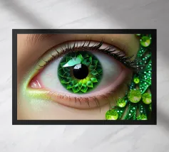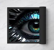 "Silver Eye" è un'opera d'arte digitale in precisa grafica computerizzata. L'occhio centrale brilla in un colore argento metallico, circondato da toni blu freddi e sottili riflessi. I dettagli in filigrana e i contorni netti conferiscono all'immagine un'aura futuristica, quasi mistica. La tecnologia digitale enfatizza il gioco di luci e strutture, facendo apparire l'occhio come una meraviglia tecnica. "Silver Eye" simboleggia chiarezza, osservazione e innovazione: un'opera d'arte moderna che combina armoniosamente tecnologia ed estetica.