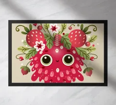 Simpatico mostro come un lampone in un allegro look kawaii, con fiori, foglie e dolci dettagli - perfetto per i bambini e per tutti gli appassionati di illustrazioni giocose.Mostro dal design amorevole e allegro.Dettagli giocosi come fiori e foglie Perfetto per i bambini e gli appassionati di fumetti Simpatica figura dall'aspetto di un frutto rosso Ideale per gli appassionati di motivi ludici