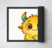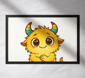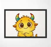 Un simpatico e soffice mostro giallo con corna colorate e grandi occhi: un motivo allegro per i bambini e gli appassionati di disegni kawaii. Simpatico mostro in giallo allegro Corna arcobaleno colorate come richiamo visivo Design fumettoso e amichevole Ideale per i bambini e gli appassionati di mostri Perfetto per gli amanti del kawaii e dei cartoni animati
